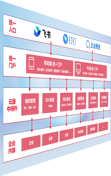 对协作平台提供支持服务,,,,支持企业应用与协作平台对接,,,包含组织同步、、、、消息集成、、、待办集成等。。支持目前主流的协作平台:钉钉、、、企微和飞书。。。
